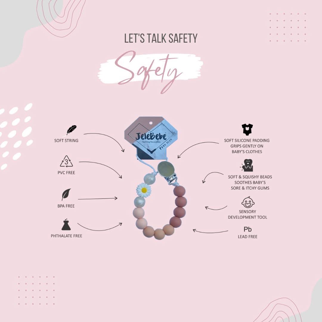 JeleBebe was launched in 2016 by a mom who wanted a practical and stylish teething solution after her little one was born. What started with teething jewellery has grown into a full range of baby-safe essentials, including our signature 3-in-1 Pacifier Clips, silicone teethers, and feeding-friendly necklaces.